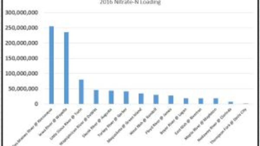 Iowa Statewide 2016 Stream Nitrate-N Load Calculated